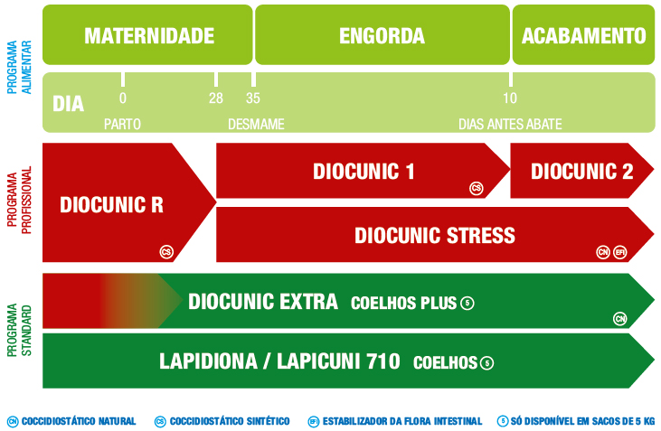 - para coelhas e coelhos reprodutores a Biona disponibiliza dois produtos que são os mais indicados. No caso de se tratar de uma pequena produção semi-industrial, estes animais devem ser alimentados principalmente com a nossa linha Lapicuni 710 (alimento único), podendo esta ser suplementada com a nossa mistura Ceregal Coelhos. Já no caso de se tratar de um produtor que cria coelhos para consumo próprio aplica-se precisamente o oposto, ou seja, o alimento principal deve ser a mistura Ceregal, complementada com Lapicuni 710, vendido em saquetas de 5Kg.